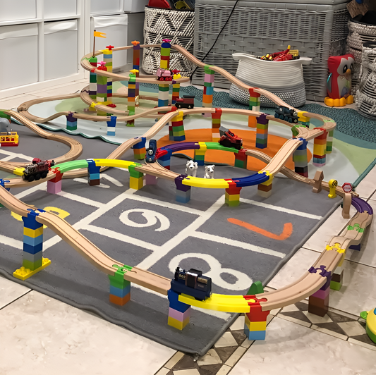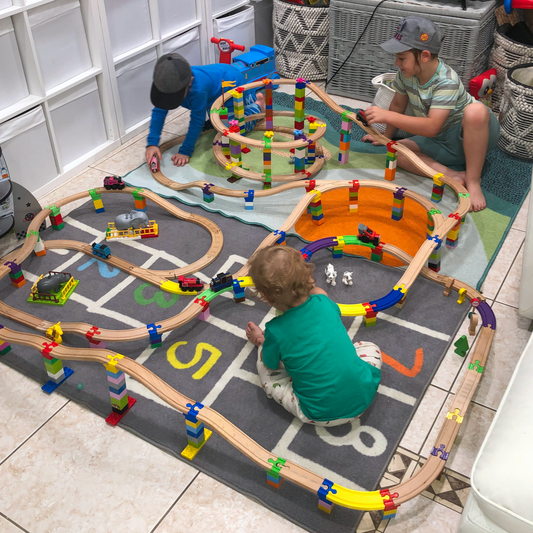 These are amazing for fans of wooden trains! Our kids love to have us build elaborate tracks, and it's great we don't have to store risers. We can just use the duplo we have!